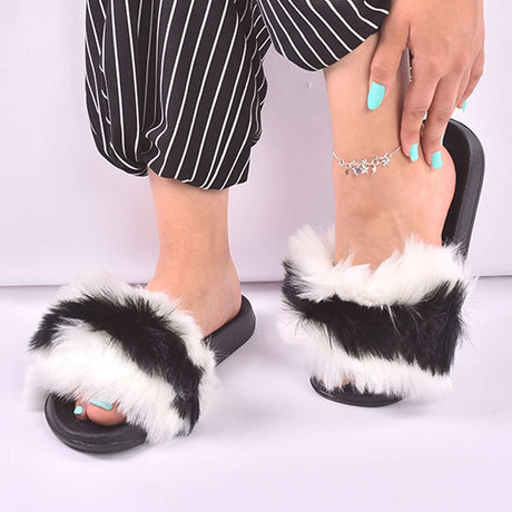 حذاء نسائي مفتوح من الأمام من الفرو الصناعي