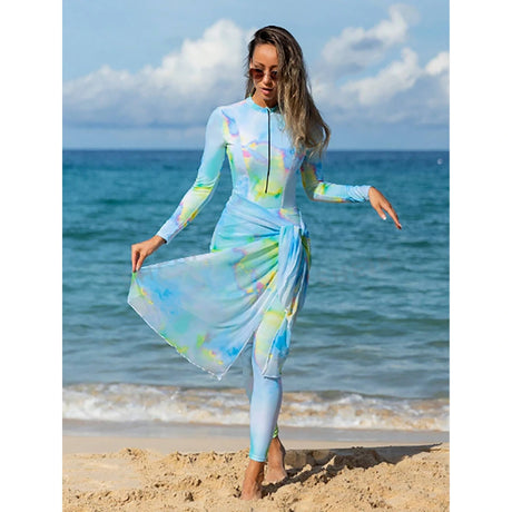 Shein - 4pack Marble Print Zipper High Neck Burkini Swimsuit & Swim Cap