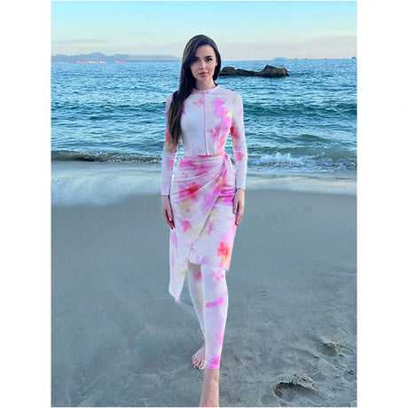 Shein - Mulvari solid color long sleeve tankini swimsuit set
