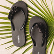 Summer Slipper Hand Made Flower Black - Plastic material Rubber inner material Hard rubber sole material Thong round toecap shape Slip-on