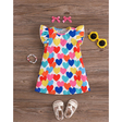 R-Shein - Infant girls' summer dress with collar sleeves and stretch fabric featuring an attractive colorful pattern