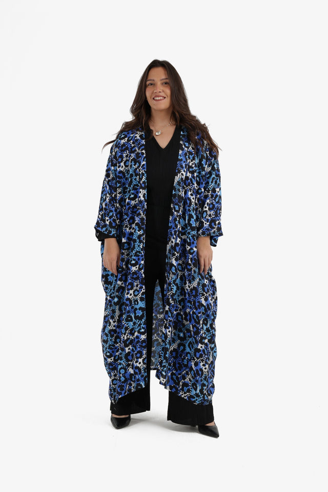 Blue Leopard Printed Kimono
